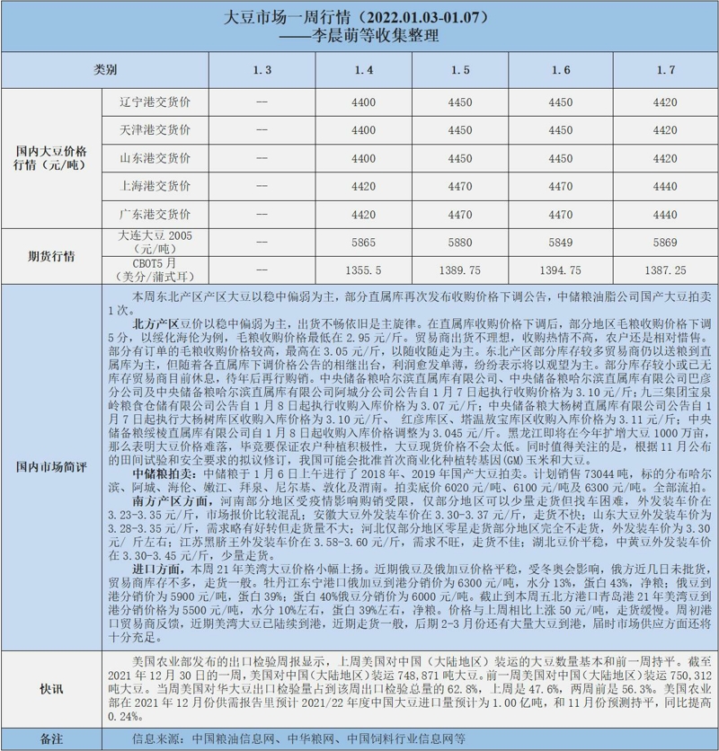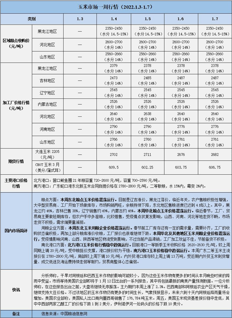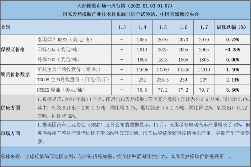 天然橡膠、大豆、玉米市場一周行情(2022.01.03-01.07)