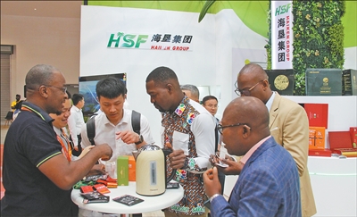 科特迪瓦第七屆國際農(nóng)業(yè)和動物資源展上,非洲客商在海南省農(nóng)墾投資控股集團(tuán)有限公司展臺前參觀咨詢。鄒松攝