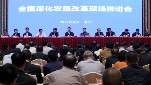 3月26日,農(nóng)業(yè)部在??谑姓匍_深化農(nóng)墾改革現(xiàn)場推進(jìn)會,考察學(xué)習(xí)海南省積極有效推進(jìn)農(nóng)墾改革的好經(jīng)驗(yàn)好做法,對全國農(nóng)墾改革落實(shí)工作進(jìn)行再動員再部署再推動。農(nóng)業(yè)部部長韓長賦、海南省委書記羅保銘出席會議并講話。韓長賦強(qiáng)調(diào),各級農(nóng)墾部門要深入學(xué)習(xí)習(xí)近平總書記、李克強(qiáng)總理等中央領(lǐng)導(dǎo)同志有關(guān)深化農(nóng)墾改革重要指示精神,把思想和行動真正統(tǒng)一到中央的決策部署上來,下定決心、堅定信心,真抓實(shí)干、攻堅克難,既當(dāng)改革促進(jìn)派,又當(dāng)改革實(shí)干家,堅定不移將農(nóng)墾改革推向深入,如期完成中央部署的各項改革任務(wù),不斷開創(chuàng)農(nóng)墾事業(yè)發(fā)展新局面,以優(yōu)異成績迎接黨的十九大勝利召開。