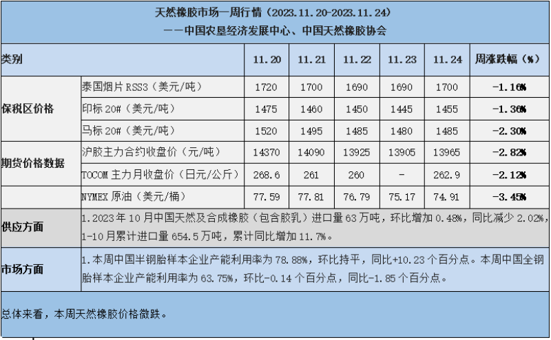 天然橡膠、大豆、玉米市場一周行情(2023.11.20-11.24)