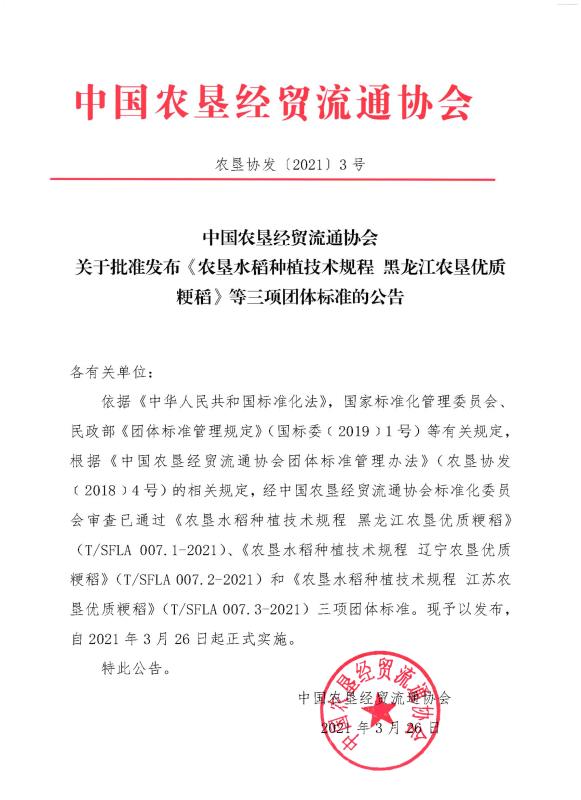 《農(nóng)墾水稻種植技術(shù)規(guī)程 黑龍江農(nóng)墾優(yōu)質(zhì) 粳稻》等三項(xiàng)團(tuán)體標(biāo)準(zhǔn)發(fā)布實(shí)施