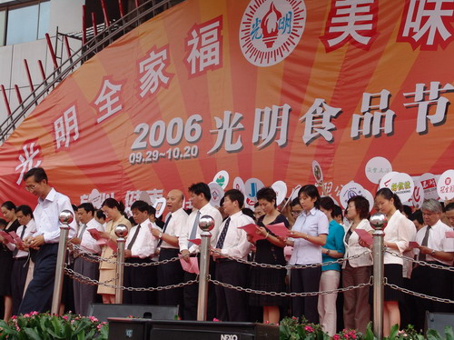 (光明集團副總裁葛俊杰帶領(lǐng)各品牌作安全質(zhì)量承諾)