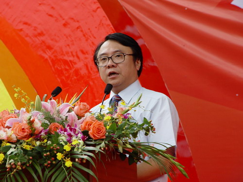 (光明集團監(jiān)事會主席王洪泉上臺舉行放飛儀式)