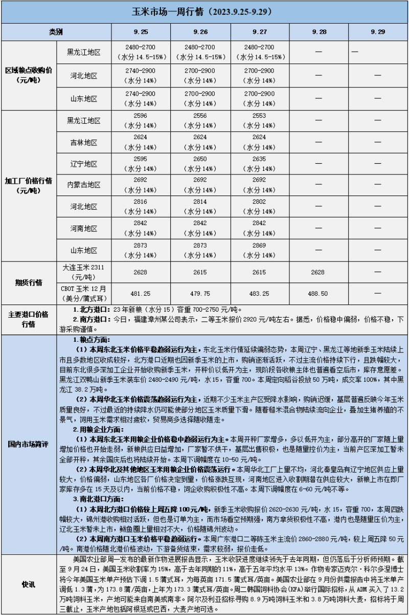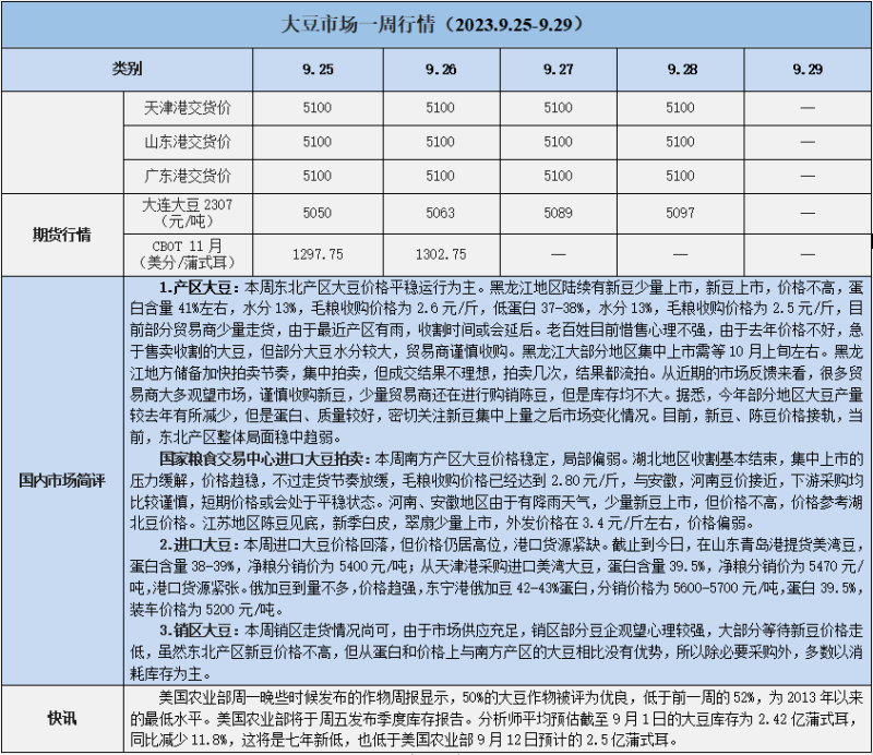 天然橡膠、大豆、玉米市場一周行情(2023.09.25-09.29)
