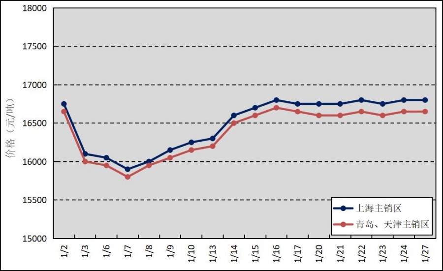 國內(nèi)主銷區(qū):1月,國產(chǎn)全乳標(biāo)準(zhǔn)膠上海市場(chǎng)平均價(jià)格16500元/噸,環(huán)比下跌736元/噸,最高價(jià)為16800元/噸,最低價(jià)為15900元/噸;青島市場(chǎng)和天津市場(chǎng)平均價(jià)格16386元/噸,環(huán)比下跌764元/噸,最高價(jià)為16700元/噸,最低價(jià)為15800元/噸。