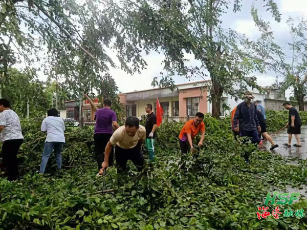 9月7日海墾旅游集團(tuán)成立7支80人的救災(zāi)搶險(xiǎn)隊(duì)伍,投入搶險(xiǎn)物資2.2萬元,到形勢(shì)最嚴(yán)峻、搶險(xiǎn)最困難、群眾最需要的地方開展災(zāi)后生產(chǎn)自救工作。