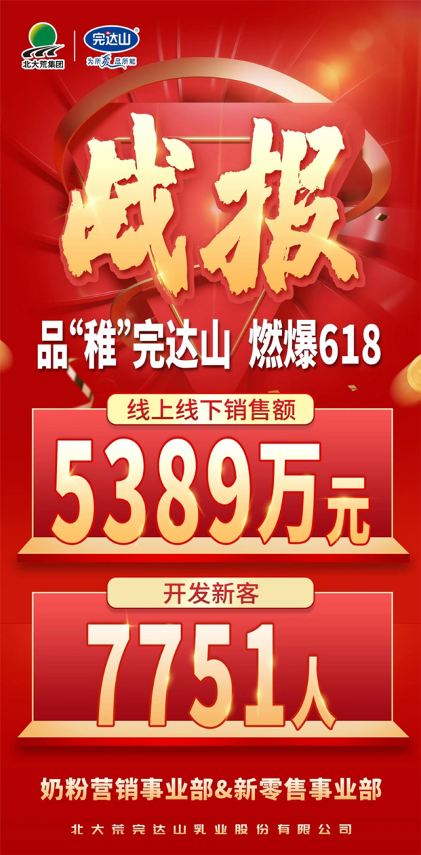為轉變營銷方式,搶抓市場機遇,6月17日至19日,為期3天的品“稚”完達山直播狂歡活動燃爆全國。此次“618”大型主題直播活動,眾多明星大咖齊助陣,活動當天,北大荒完達山乳業(yè)股份有限公司領導為活動全力打CALL,完達山稚采品牌代言人馬麗隔空助力,黑龍江電視臺主持人鄧楊助陣直播間。直播間在線人數(shù)一度突破25萬人,創(chuàng)造線上線下銷售額5389萬元,新客開發(fā)7751人。