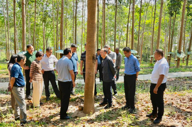 云南省農(nóng)墾局副局長劉家訓(xùn),西雙版納州人大常委會副主任張文虎,西雙版納州農(nóng)墾局黨委書記、局長白云波,勐臘縣人民政府副縣長盤進城,勐臘縣農(nóng)業(yè)農(nóng)村局副局長楊海濤,集團公司黨委書記、董事長、總經(jīng)理羅義凱,黨委委員、董事、副總經(jīng)理陳剛陪同調(diào)研。
