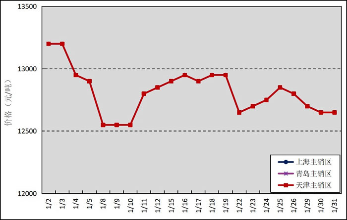 國內(nèi)主銷區(qū):1月,國產(chǎn)全乳標(biāo)準(zhǔn)膠上海市場平均價(jià)格12816元/噸,環(huán)比上漲202元/噸,最高價(jià)為13200元/噸,最低價(jià)為12550元/噸;青島市場平均價(jià)格12816元/噸,環(huán)比上漲202元/噸,最高價(jià)為13200元/噸,最低價(jià)為12550元/噸;天津市場平均價(jià)格12816元/噸,環(huán)比上漲202元/噸,最高價(jià)為13200元/噸,最低價(jià)為12550元/噸。