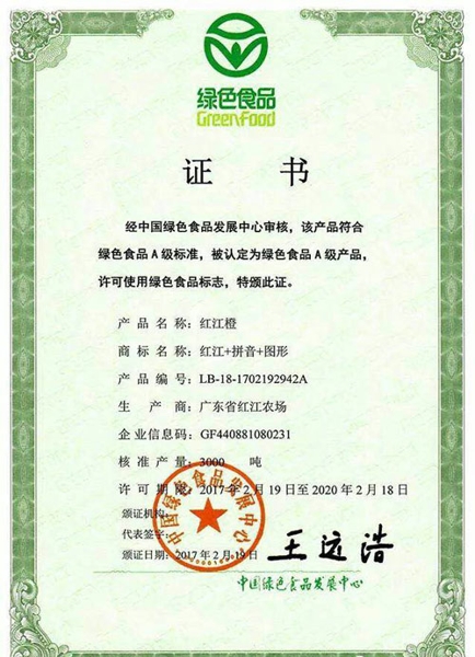 紅江橙,是紅江場科技人員,從一棵變異的單體中,通過嫁接促成嵌合體的變異而生成。自1973年投產以來,現已擁有二萬畝的生產基地。目前紅江農場以創(chuàng)名牌為中心,規(guī)劃并建立完善的管理系統(tǒng),已擁有獨立的科技隊伍,與獨立的生產基地、試驗基地、培育基地,以及加工與分級包裝生產線。已獲國家頒發(fā)的“綠色食品”標準證書,中國綠色食品A級認證,以及中國農業(yè)博覽會名牌產品、廣東省名牌產品、廣東省著名商標。已列入國家的星火計劃,是中國外交部國賓館指定的國賓產品。產品已經出口了幾十個國家與地區(qū)。