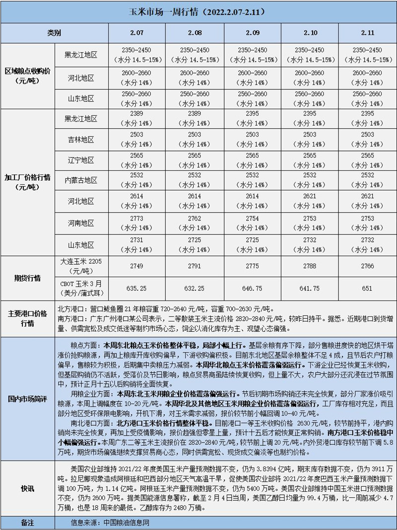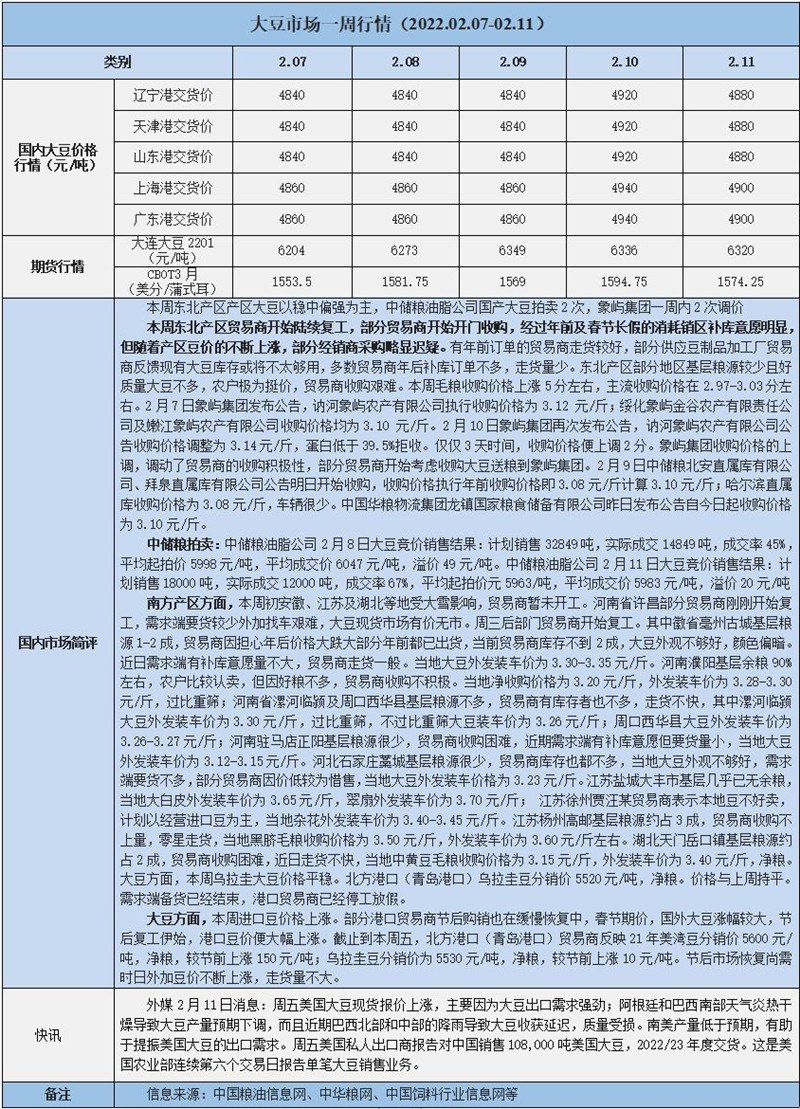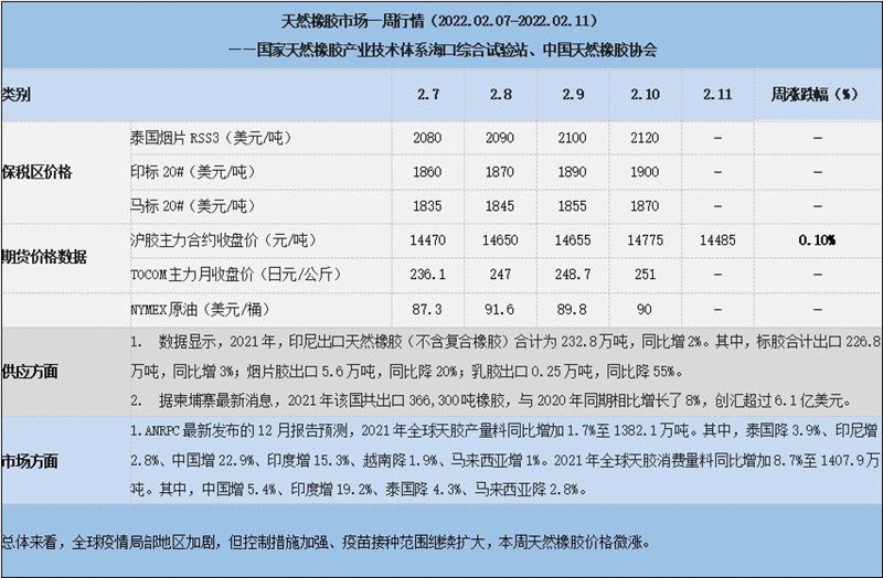 天然橡膠、大豆、玉米市場一周行情(2022.02.07-02.11)