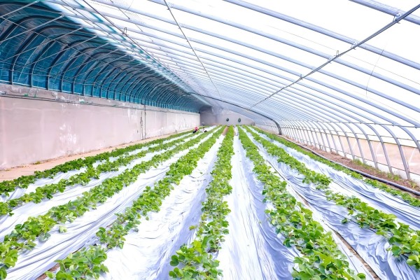 “現(xiàn)在,草莓花芽分化率已經達到80%以上,是覆膜的好時機,覆膜能夠保溫、保濕、防雜草、防病蟲害,還能有效提升草莓品質,實現(xiàn)草莓豐產豐收?!痹扑疄侈r技人員王宇輝說。草莓日光溫室內,一株株健壯的草莓苗長勢喜人,地壟間,工作人員正忙著給草莓植株蓋上地膜,一鋪一拉一壓一掏,草莓苗立刻完好無損地從地膜里探出頭來,工作人員們精心呵護著每一株草莓苗,做好草莓管護工作。
