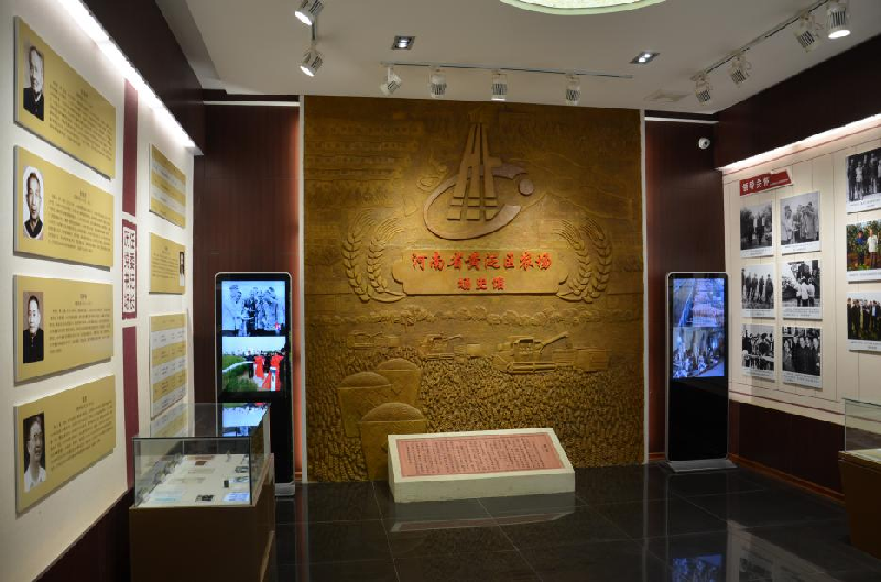在場(chǎng)史館的西南處設(shè)立了鑒暢園,有糧倉(cāng)、糧囤、馬車等微型景觀;東南處則停放著拖拉機(jī)、吉普車、小轎車等不同時(shí)期的農(nóng)業(yè)機(jī)械和交通工具。在展室前后排房的甬道上,豎立著一塊塊黃泛區(qū)大事牌,時(shí)時(shí)提醒著人們不忘歷史、開(kāi)拓未來(lái)。