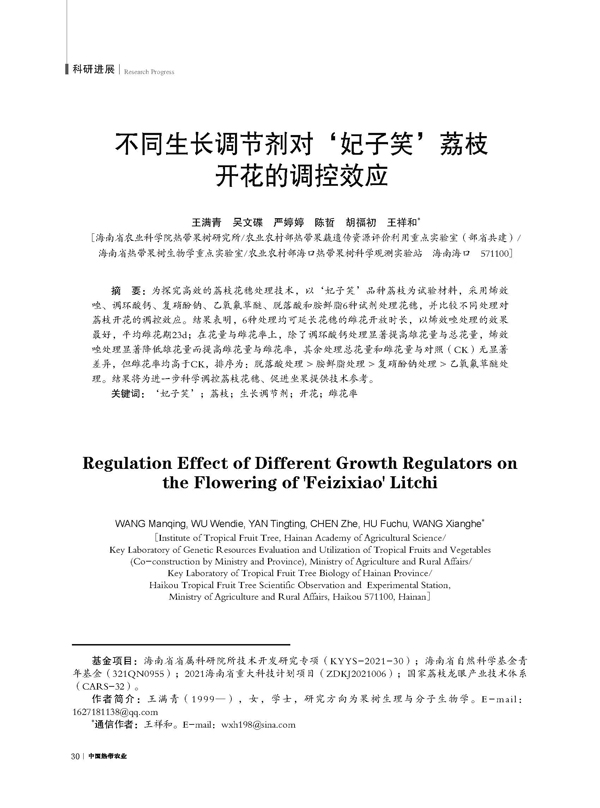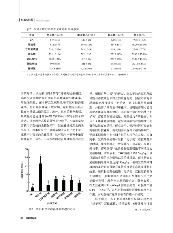 不同生長調(diào)節(jié)劑對‘妃子笑’荔枝開花的調(diào)控效應