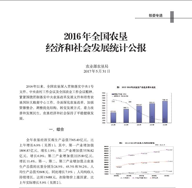 2016年全國農(nóng)墾經(jīng)濟(jì)和社會發(fā)展統(tǒng)計公報