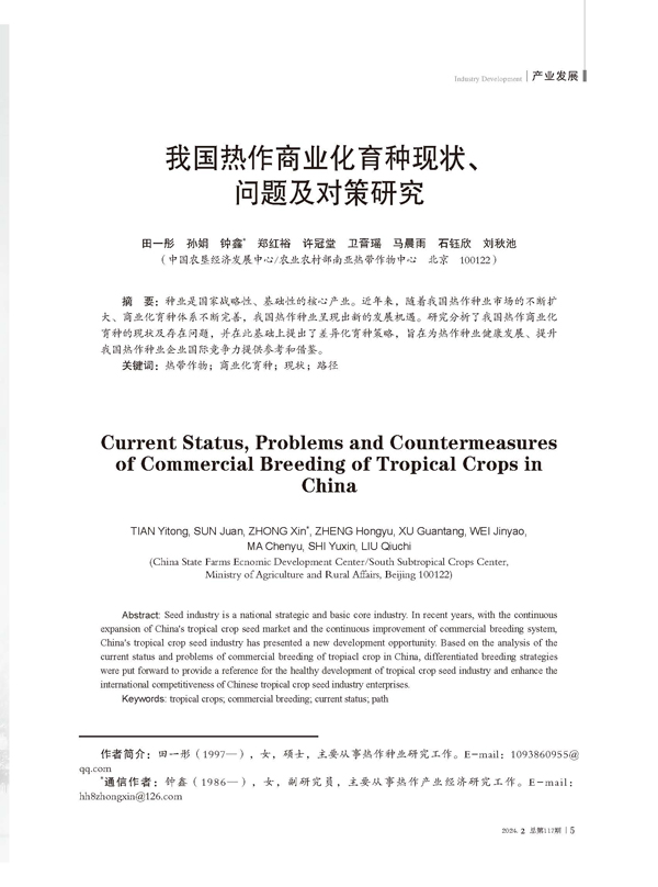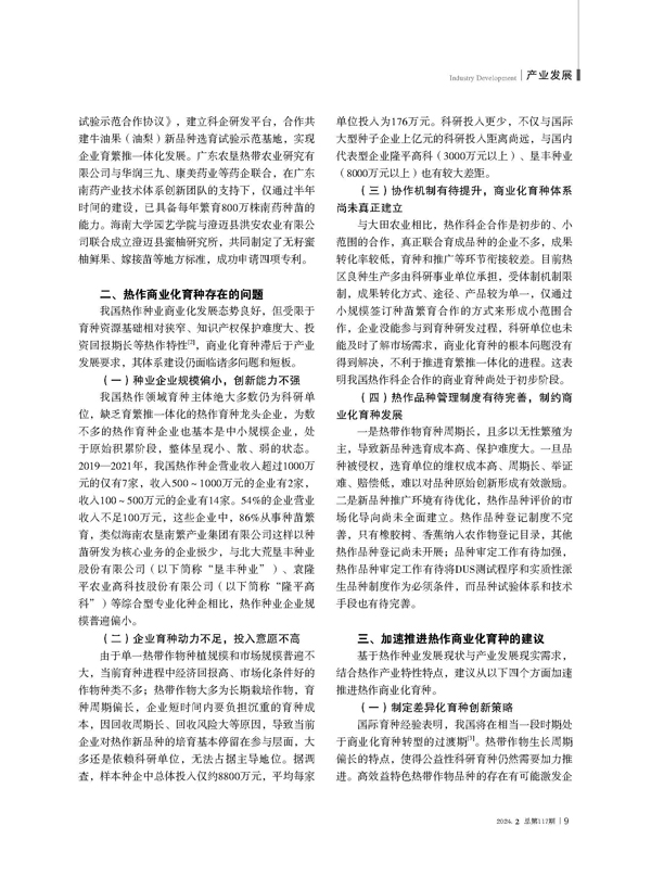 我國熱作商業(yè)化育種現(xiàn)狀、問題及對策研究