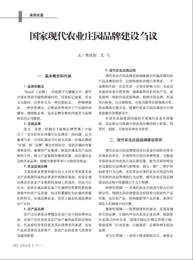國家現(xiàn)代農(nóng)業(yè)莊園品牌建設(shè)芻議