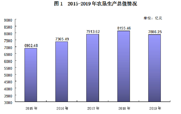 全年實(shí)現(xiàn)農(nóng)業(yè)總產(chǎn)值3862.05億元,比上年增長(zhǎng)1%。其中:種植業(yè)產(chǎn)值2365.60億元,林業(yè)產(chǎn)值98.58億元,畜牧業(yè)產(chǎn)值889.51億元,漁業(yè)產(chǎn)值273.83億元,其他輔助性活動(dòng)產(chǎn)值234.53億元。