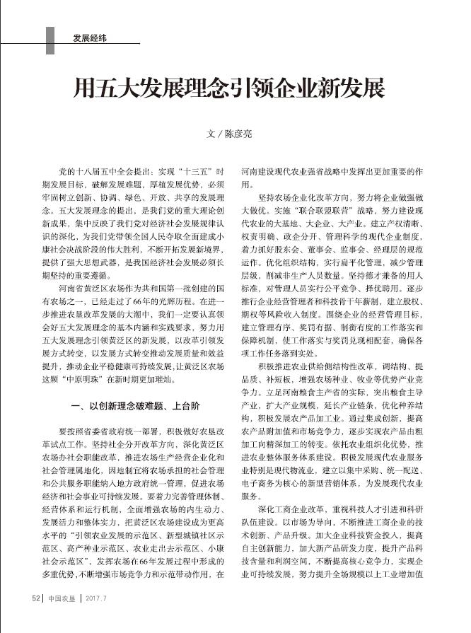 用五大發(fā)展理念引領(lǐng)企業(yè)新發(fā)展